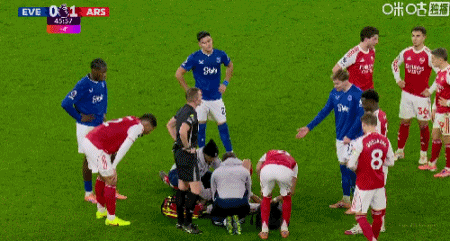 第45+1分鐘,卡拉菲奧里爭(zhēng)頂摔到后腦勺,隊(duì)醫(yī)趕緊上場(chǎng)治療